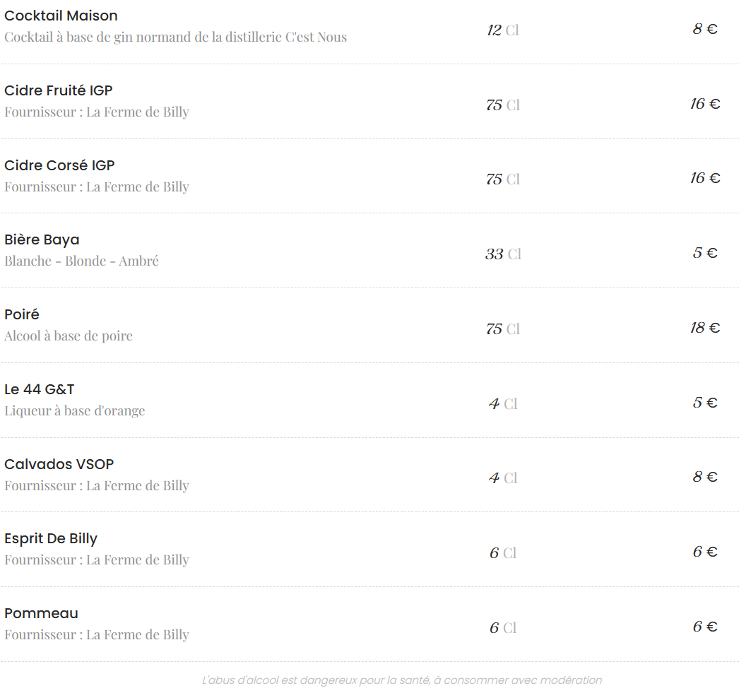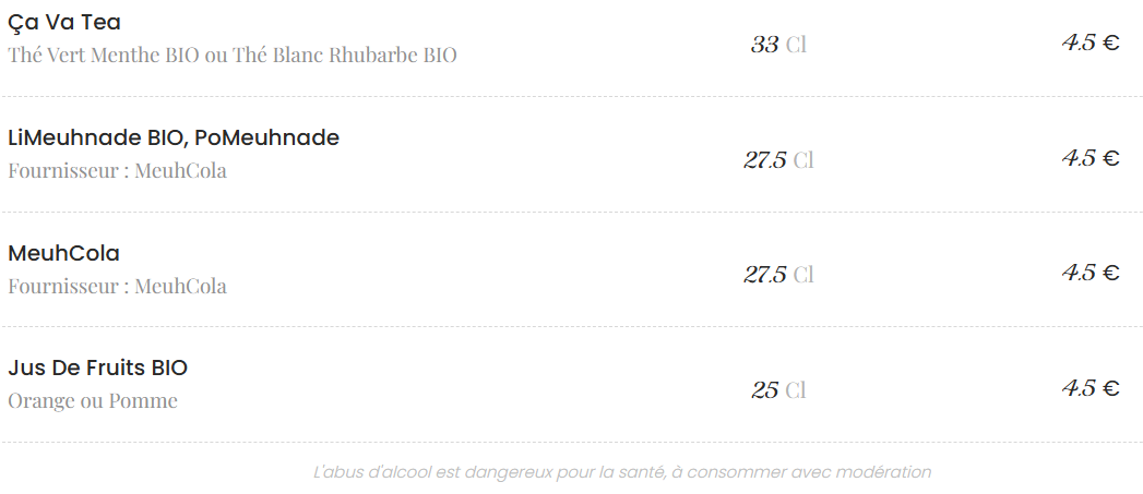 Formule boissons (1/2 bouteille d'eau + 1 verre de cidre + 1 café)- 4,5€